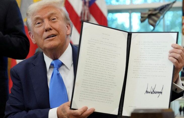 ट्रम्प ने H-1B वीज़ा में बदलाव संबंधी आदेश पर हस्ताक्षर करने के बाद इसे मीडिया के समक्ष प्रस्तुत किया।