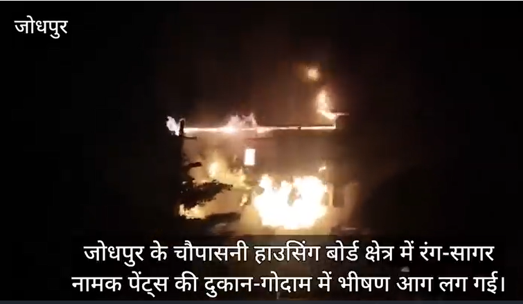 जोधपुर से इस वक्त की बड़ी खबर सामने आई है। चौपासनी हाउसिंग बोर्ड इलाके में प्रथम पुलिया के पास स्थित रंग सागर नामक पेंट्स की दुकान और गोदाम में गुरुवार दोपहर अचानक भीषण आग लग गई। बताया जा रहा है कि यह तीन मंजिला इमारत है, जिसमें भारी मात्रा में कलर, ऑयल, स्पिनर और स्प्रिट जैसी ज्वलनशील सामग्री भरी हुई थी। आग लगते ही पूरे इलाके में अफरातफरी मच गई।