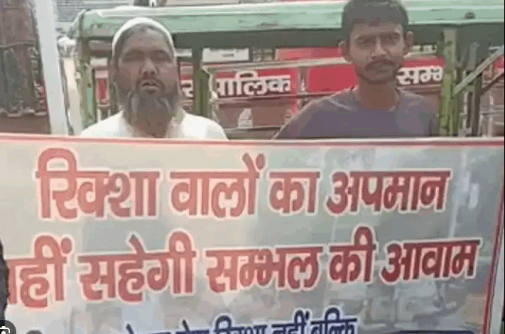 सपा विधायक के बयान पर रिक्शा चालकों का गुस्सा: संभल में कांग्रेस नेता का अनोखा विरोध प्रदर्शन।