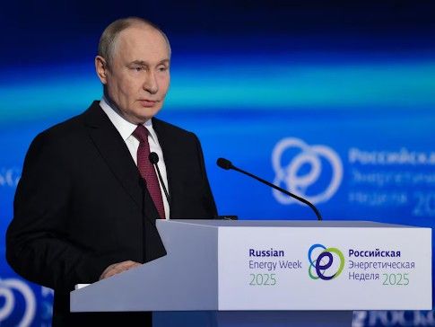 १६ अक्टूबर २०२५ को मॉस्को में रूसी एनर्जी वीक में भाषण देते राष्ट्रपति व्लादिमीर पुतिन।