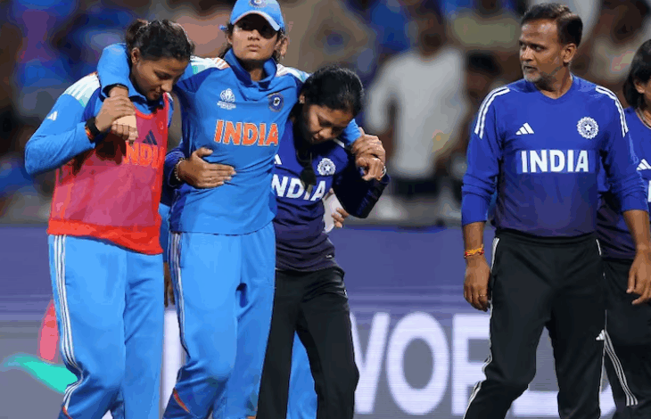 बांग्लादेश की पारी के 21वें ओवर में प्रतीका रावल गेंद पकड़ने के लिए दौड़ीं, किंतु बारिश के कारण मैदान फिसलनभरा था, जिससे वे फिसलकर गिर गईं। उन्हें स्ट्रेचर की आवश्यकता तो नहीं पड़ी, परंतु अन्य खिलाड़ियों की सहायता से लंगड़ाते हुए मैदान से बाहर गईं।